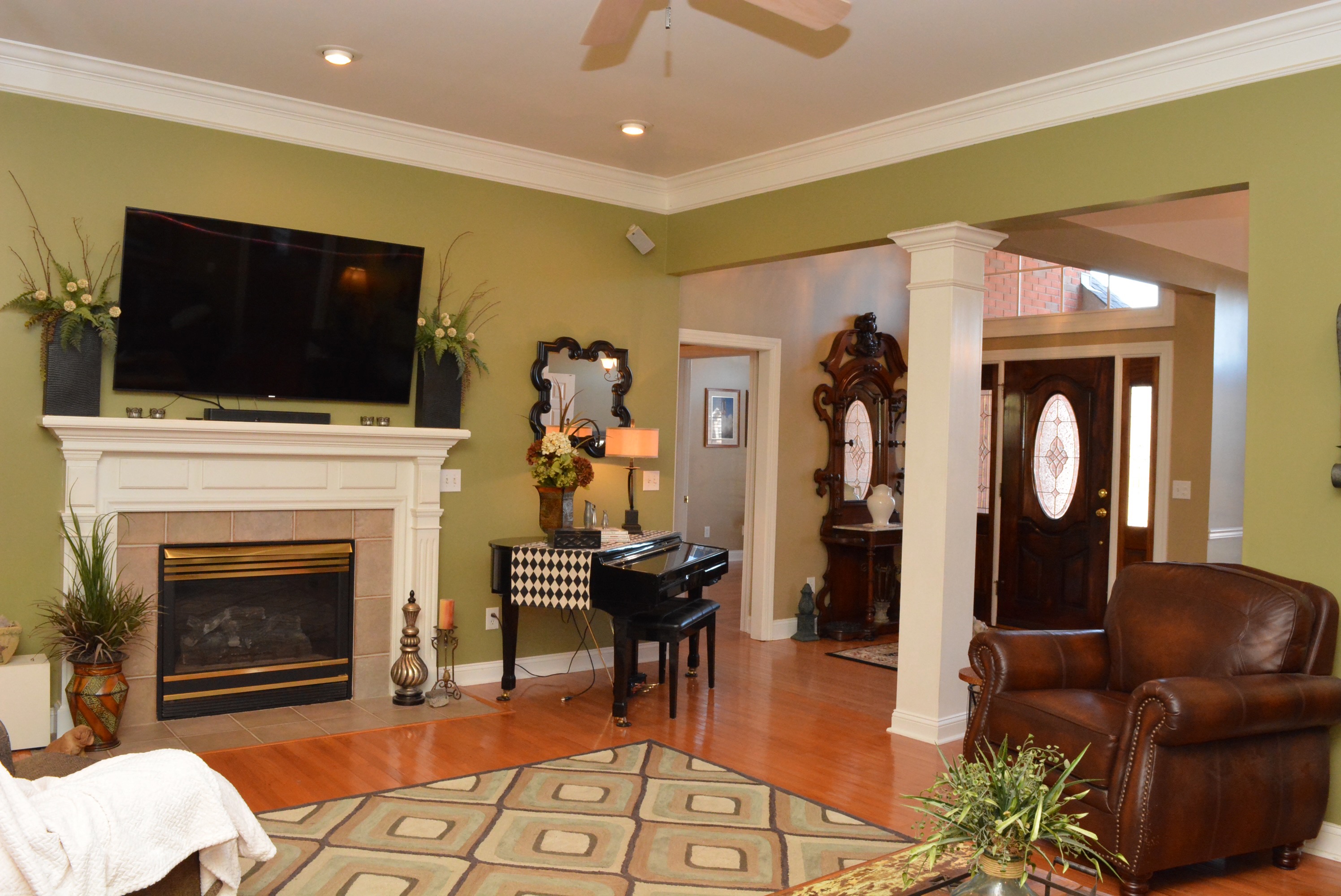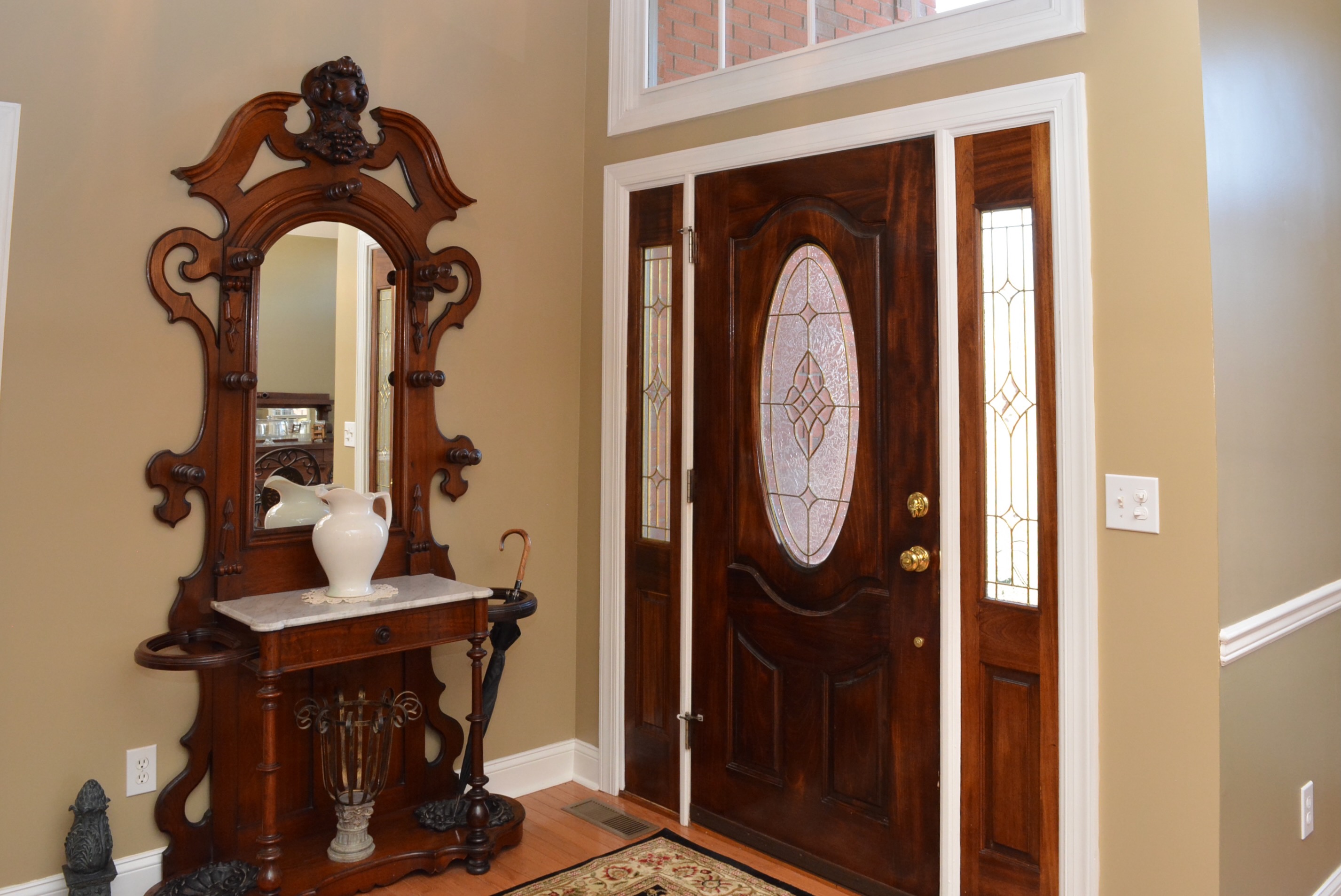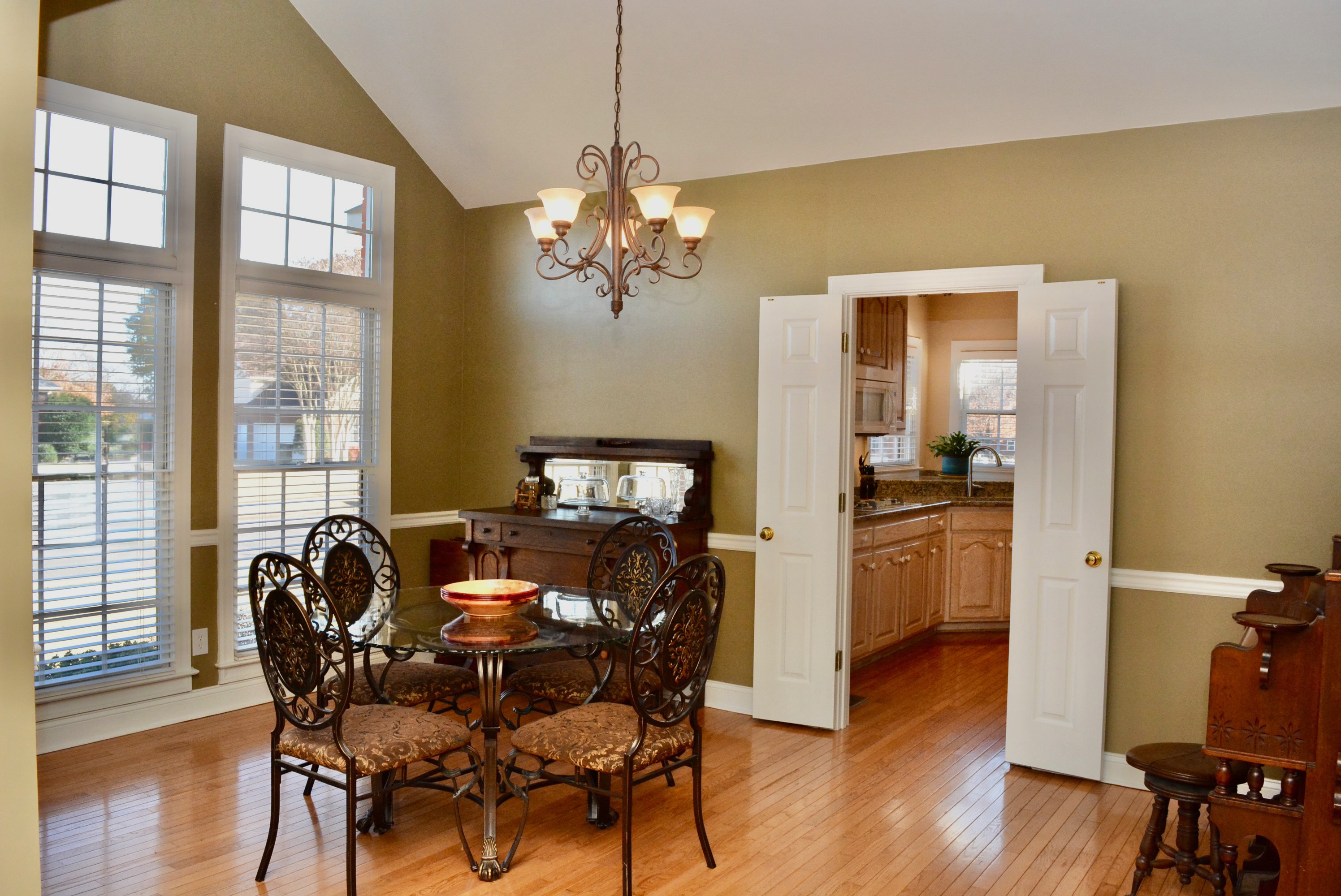 Entering through a cut glass front door with arched window and sidelights, the foyer ushers you into the open floor plan. A variety of ceiling heights, handsome millwork, and architectural elements delineate the space.