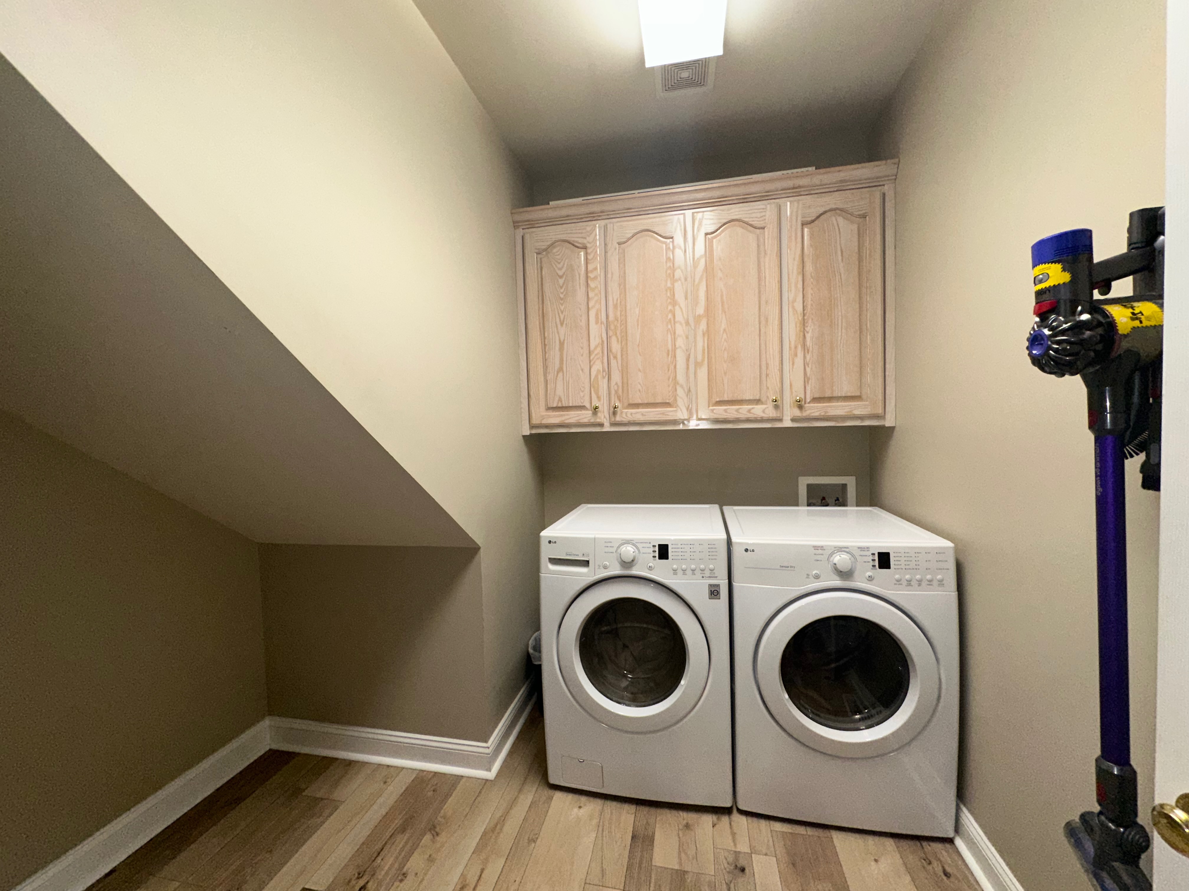 Not to be forgotten, the well-appointed laundry features built-in cabinets and space for a freezer and extra storage.